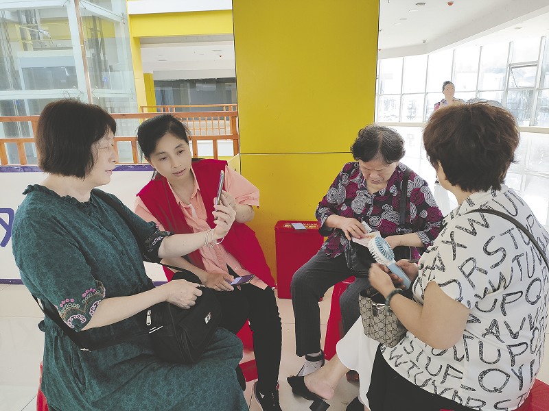 5月22日,赫山区桃花仑街道康富路社区组织社区居民开展“乐享智能生活”智慧助老活动。党员志愿者现场为居民讲解电信网络诈骗防范常识和人脸建模认证、微信支付、视频聊天、网上预约医院挂号等智能手机的基本操作办法。图为党员志愿者给居民讲解智能手机的操作。