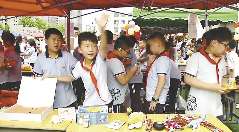 ▲学生在爱心义卖市场上尽情“吆喝”。