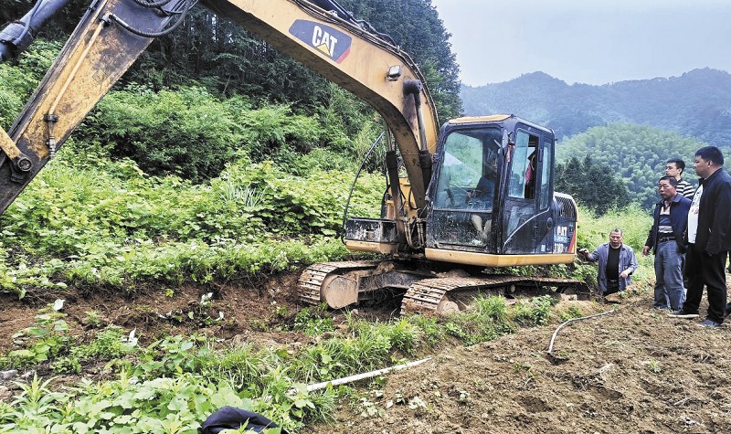 搅拌砂浆、运送石料、修砌边坎……6月6日,伴随着挖掘机的阵阵轰鸣,安化县滔溪镇梅兰坪村黄梅片区5组、6组机耕道路在万众期待中正式开工。