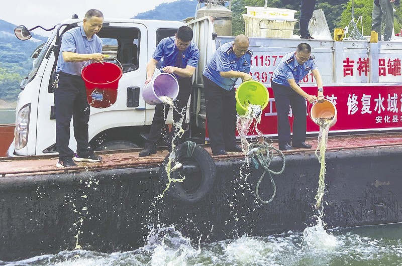 近年来,安化县积极采取增殖放流等多项措施,持续改善水域生态环境,促进渔业资源可持续发展。一方面,以休渔期为契机,持续开展打击非法捕捞行为的专项整治行动;另一方面,加大宣传力度,通过政府引导、企业带动、社会参与,切实保护水生生物资源,改善生态环境。