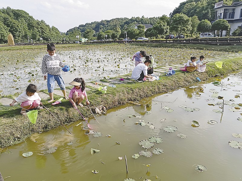 印象广场上,游客争相和大型史诗纪念群雕《山乡巨变》合影;清溪画廊下,着汉服、撑油纸伞的古装爱好者仿若行走在画中;荷塘边,钓虾、抓小鱼的孩童,正模仿青蛙“呱呱呱”叫;清溪书屋里,村民临窗而坐,捧着心仪作家的作品,看得如痴如醉……