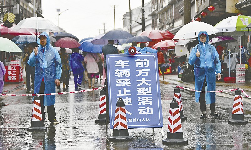 从“百米”龙舟登江到端午节当天表演赛正式举行,平均每天都有超5万游客来到兰溪,虽然人多拥挤,但看到交警、城管、民兵、志愿者等在现场值守,维持秩序,所有人都觉得安心、暖心。
