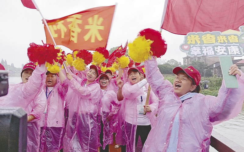 广东易伙伴控股集团有限公司董事长刘瑛特意从珠海赶回家乡参赛。“龙舟一下水,锣鼓一响,我的心里就‘动次动次’,根本无心工作,只想回来划船。”刘瑛是兰溪镇金河村人,听说家乡要举办双桡龙舟表演赛,提前一周就安排好了公司的事务回到家乡,专心训练和比赛。