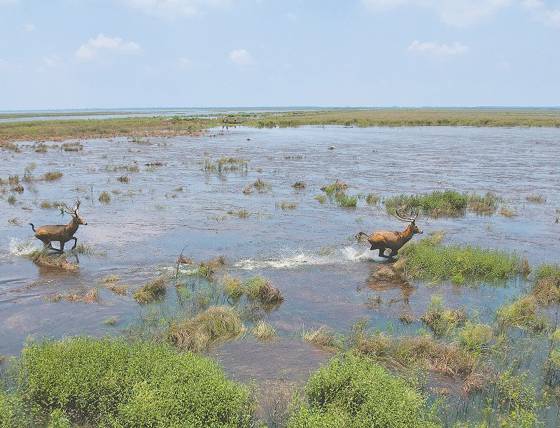 麋鹿在南洞庭湖撒欢。