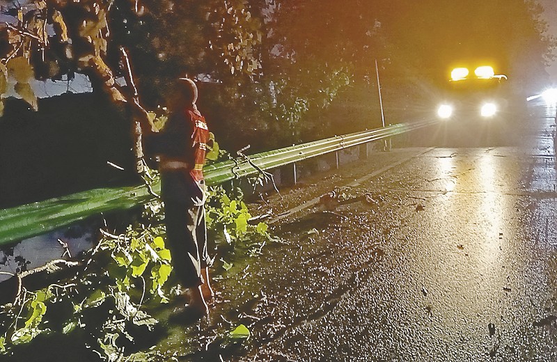 7月9日傍晚,天空电闪雷鸣,狂风夹着暴雨侵袭而来。赫山区公路建设养护中心笔架山公路站在巡路时,发现宁朱线苏家湖路段有一棵行道树倒伏在道路中间,占据半幅车道,严重影响行车安全。养护工作人员迅速下车,冒着暴雨,在行道树倒伏路段两端设置安全警示标志,用电锯把倒伏的大树进行了切割、分解、清运,并对散落在路面的零星树枝和落叶彻底清理,经过努力,路面恢复了畅通。