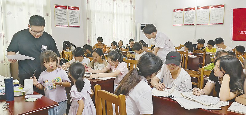 湖南大学机载寻梦实践团7月9日到达金鸡村,开展以教育关怀为主题的暑期“三下乡”实践活动。在村委楼临时搭建的教室里,孩子们在实践团哥哥姐姐的耐心引导下,积极发言、主动表达,在轻松活跃的课堂氛围中学习防溺水、未成年人保护、用火用电安全等实用知识。实践团成员还精心准备了阅读分享、历史故事等课程,引导孩子们树立正确的价值观,并通过介绍不同地区的民俗文化,在孩子们心中种下向往更加广阔世界的种子。