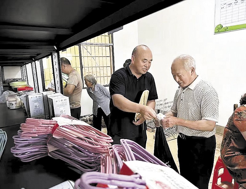 “肖妈,你把塑料瓶、纸盒子等废弃物给我,帮你送到村里兑换商品去。”7月23日,安化县乐安镇水溪村村民代表李国祥上门替73岁的肖奶奶清理生活废弃物。