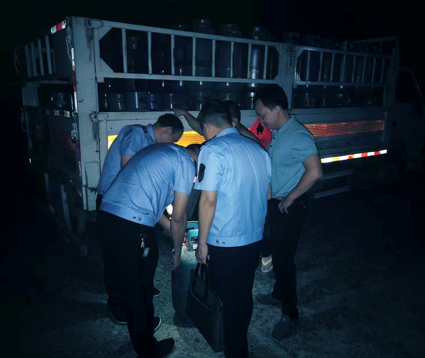 为防止气体违法充装行为淹没在夜幕之下,8月18日凌晨,资阳区市场监管局主要领导带队,组织综合行政执法大队精干力量,对辖区内5家气体充装单位展开“零点行动”,突击检查各充装站液化石油气、工业气体充装行为,确保气瓶充装环节安全。