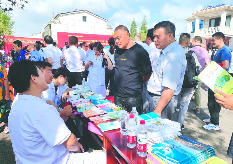 村民在咨询台前翻阅资料,问询政策。