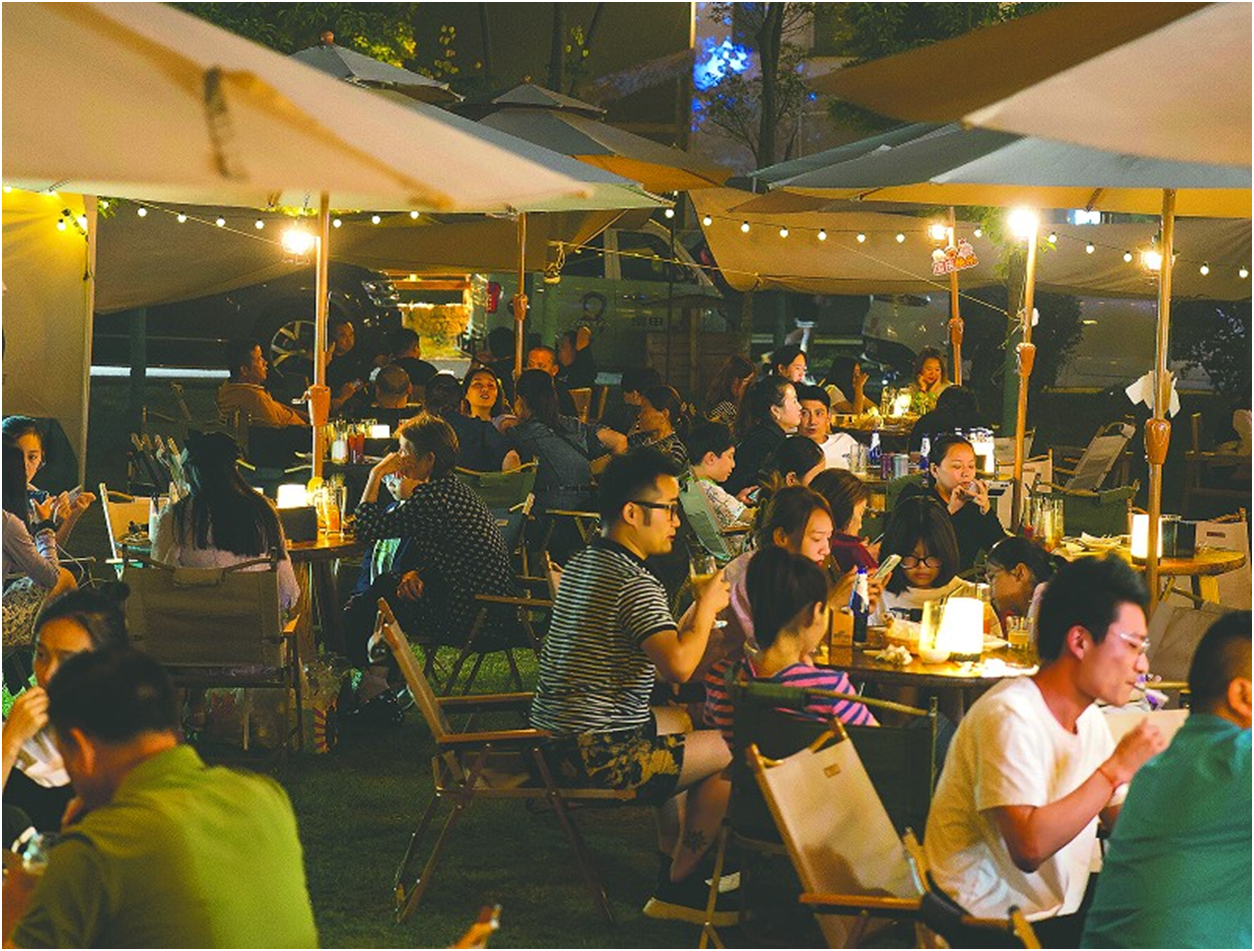 游客在小河咀村优度乡村音乐吧听音乐、吃烧烤。刘舒婷摄