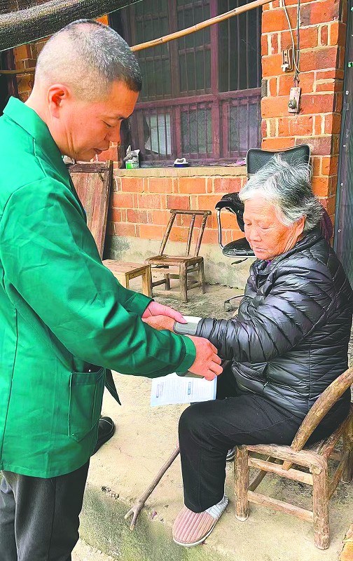 龚跃云上门给91岁的刘喜珍老人看病。陈浩军摄