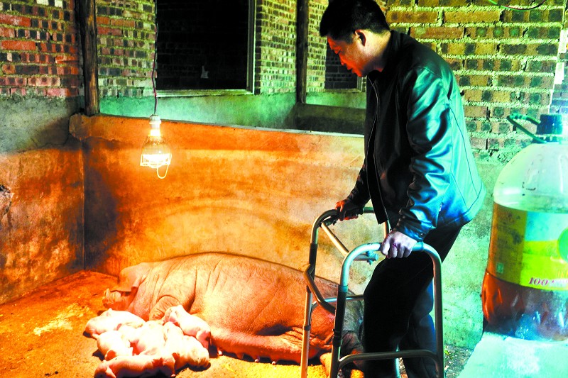 可吴坚强不仅没有气馁绝望,还安慰家人说,放心,天无绝人之路,自己一定要重振养猪事业。出院一个月后,他又开始重新购置猪仔、繁育小猪。目前,猪圈里共有60余头猪,维持着全家人的生计。“现在喂同样多的猪,几乎要花以前三倍的时间。有时候我动都不想动了,但想到生活还要继续,我还是得爬起来,继续干。”当问及吴坚强今后的打算时,他总是笑呵呵地说:“就算我再困难,也要坚持下去。再说,我的身后有村里党员干部和家人的支持,我会越来越好的。”