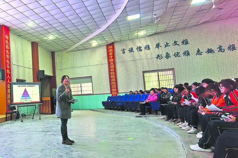 高级心理咨询师、来自桃江县悦慧社会工作发展中心的卢媛老师以“人生六层次规画”为主题,为该校高一、高二的近300名学生讲述了使命、身份、信念价值观、能力、行为、环境“六层次规画”,再通过名人从小立志的故事,激发学生的内在动力,支持学生开始思考“我将要成为一个怎样的人?”“我可以为这世界创造怎样的价值?”经由马斯克的传奇故事,让学生相信,可以在有限的生命体验中,活出无限的可能性。学生们表示,这堂课令人受益匪浅,将明确志向,努力成为一个对社会更有价值的人。