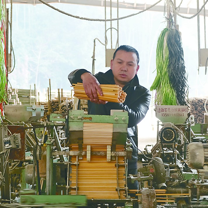 ▲工人使用智能化设备生产竹筷。 卢静摄