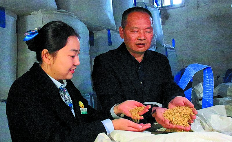 公司负责人向农业银行益阳分行工作人员介绍仓库粮食储备情况。龚剑雄摄