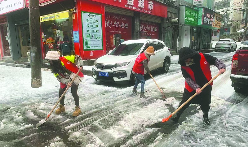 志愿者扫雪除冰。陈浩军摄