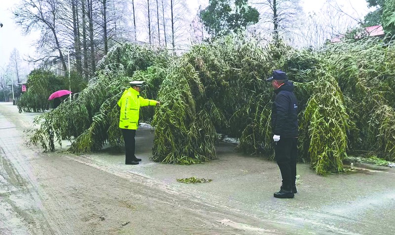 大家分工协作,先用工具砍伐被冰凌压倒并影响交通安全的竹子,再一起把砍倒的竹子放上拖车拖离现场。不到半小时,现场便全部处理干净,及时消除了安全隐患。
