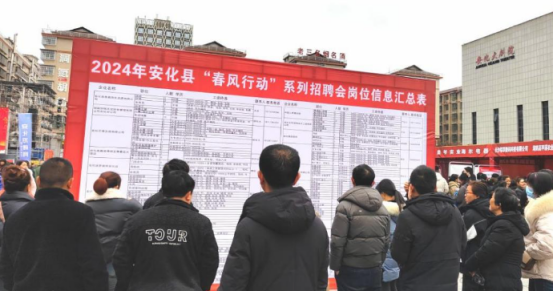 就业是最大的民生。早在正月初十,安化组织的“春风行动”线上招聘,点击观看量达到65万人次。“在外地打拼多年,还是想回到家乡工作,想不到在第一次招聘会上就找到了合适的岗位,切切实实感受到了政府为我们找工作牵桥搭线的便利。”35岁的邱小容女士在2月20日首场线下招聘现场成功签约一家企业。今年提供的6000余个就业岗位中,本地岗位增加近五分之一,现场招聘会有4000余人到达现场,1700余人达成就业意向。