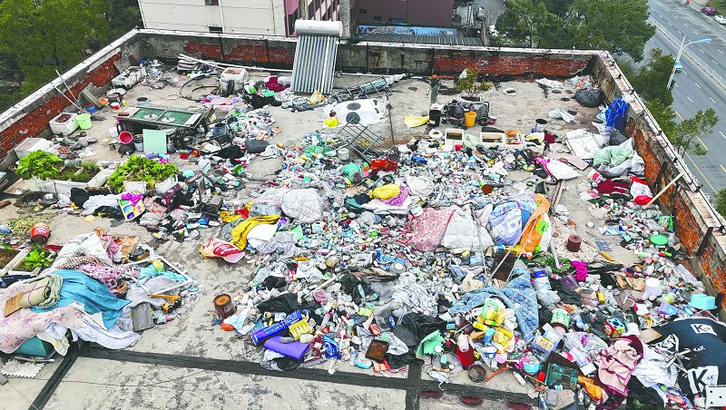 龙泰大楼楼顶堆放着大量垃圾。龚剑雄摄
