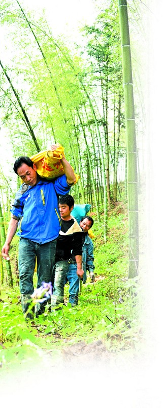 ① 采挖竹笋的农民满载而归。 吴胜琳 摄
