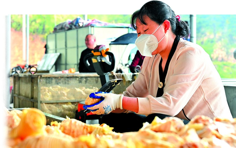 ② 生产车间里,工人对竹笋初加工。吴胜琳 摄