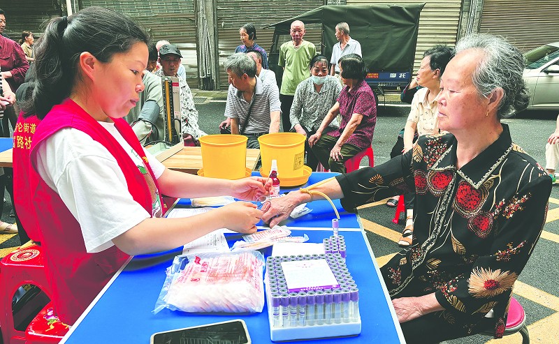 5月27日,赫山区桃花仑街道康富路社区开展“关爱老年人,我们在行动”公益活动,为社区老年人提供义诊、测量血压血糖、中医咨询、理发、修脚等全方位的暖心服务。