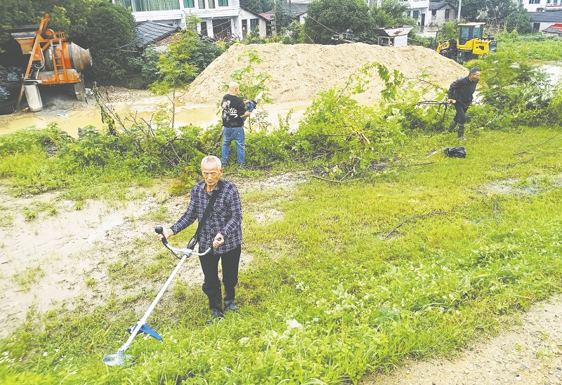 6月26日,资阳区长春镇组织人员对19.281公里大堤进行全线清基扫障,各村党员干部带头,群众自发加入,清除大堤内外杂草、杂树和杂物。图为长春镇东香村防汛大堤清基扫障现场。