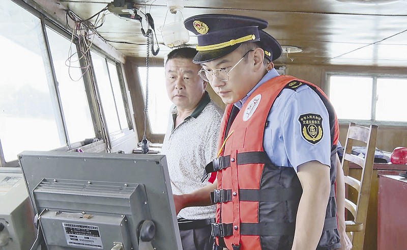南县交通运输综合行政执法大队海事中队执法队员水上巡检。刘馨予摄