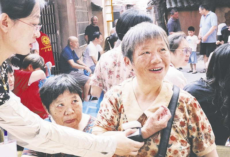 医务志愿者为人民路社区居民义诊。徐镜洋摄