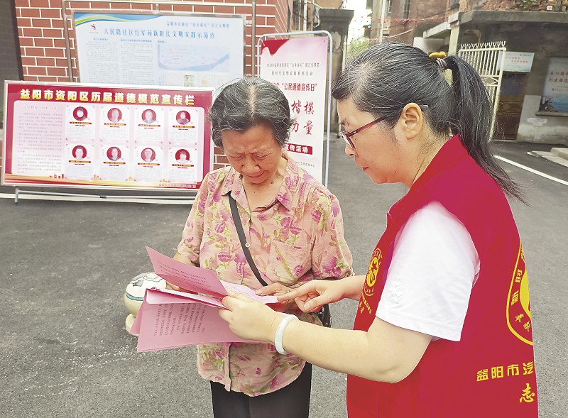 活动现场,志愿者还为辖区群众发放《公民道德宣传日倡议书》《益阳市文明促进条例》等宣传资料500余份。