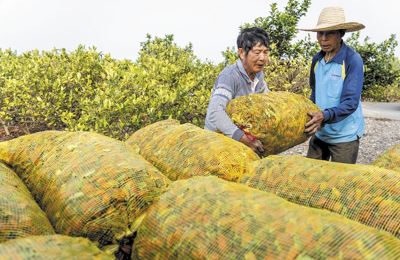 栀子的果实是传统中药,具有护肝、利胆、降压、镇静、止血、消肿等多种功效。采摘时间一般在每年的10月下旬至11月上旬,果皮呈红黄色时分批采收。因为栀子只能手工采摘,而且最好是晴天,如果遇上露水,还要等露水干后再采摘。因此,邓连喜为了确保果实的品质,特意请了村里数十名闲散劳动力帮忙采摘。一天下来,他们也能获得一份不错的收入。村民雷福元说:“一天摘得两三百斤,可得百多元钱。在家门口赚钱,我们很高兴。”