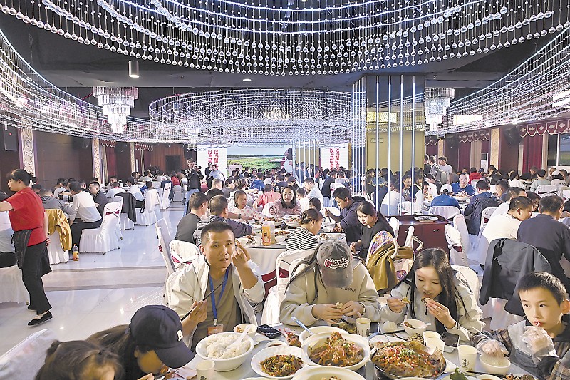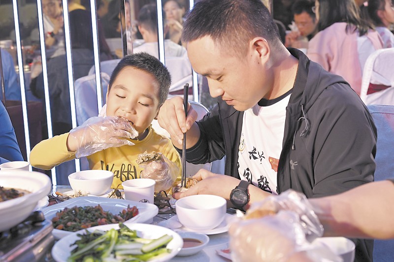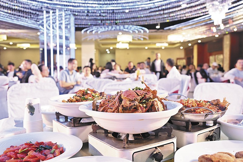 顾客陶醉在品蟹的快乐中。吴胜琳摄