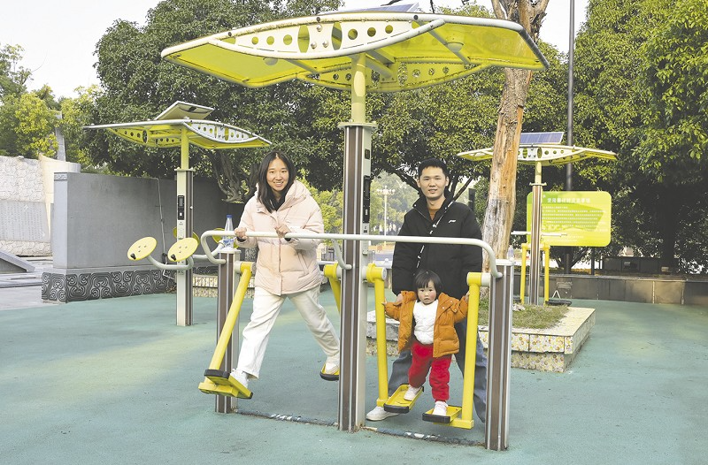 ▲市民陪孩子一起锻炼。