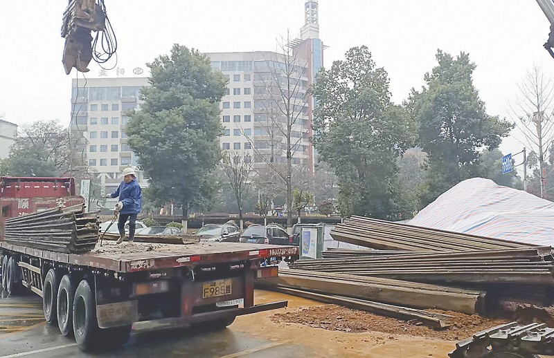 2月19日,记者在赫山区朝阳街道江金社区禧悦酒店前的露天停车场看到,施工队伍正冒着春雨忙碌而有序地修复塌方路面。据了解,预计一周可完工。