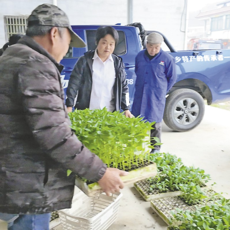 米儿农场向村民免费发放辣椒秧苗。陈浩军摄