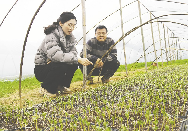 高亚和刘峰察看西瓜苗长势。卢静摄