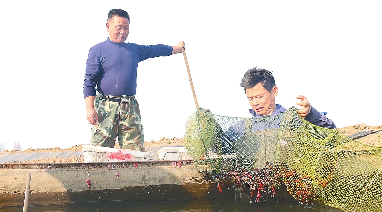 虾农在南县南洲镇班嘴村琴湖农业深水虾养殖基地收获小龙虾。