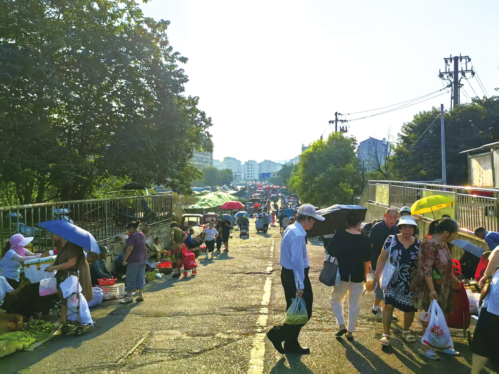 采访结束时,记者遇到正在整理菜筐的王阿姨。她是原天成市场的老摊主,现在每天早上4时便来到街边抢位置摆摊。“要是疏导点有阴凉,我肯定不想到马路边上遭罪。”她擦了擦额头的汗,“希望年底路修好了,我们能有个安稳的卖菜地儿,居民也能买得舒心。”