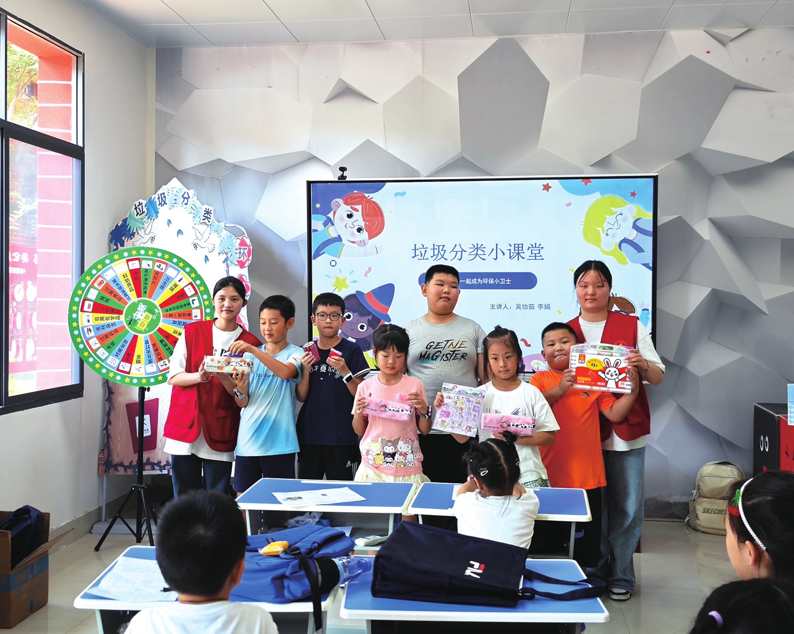活动现场,环保志愿者通过PPT讲解、科普动画播放以及发放宣传页等形式,向孩子们普及垃圾分类知识。志愿者用生动形象的比喻,帮助孩子们理解分类标准:“可回收物是‘宝藏’,厨余垃圾是‘肥料’,有害垃圾需要‘特殊照顾’,其他垃圾则要‘妥善安放’。”