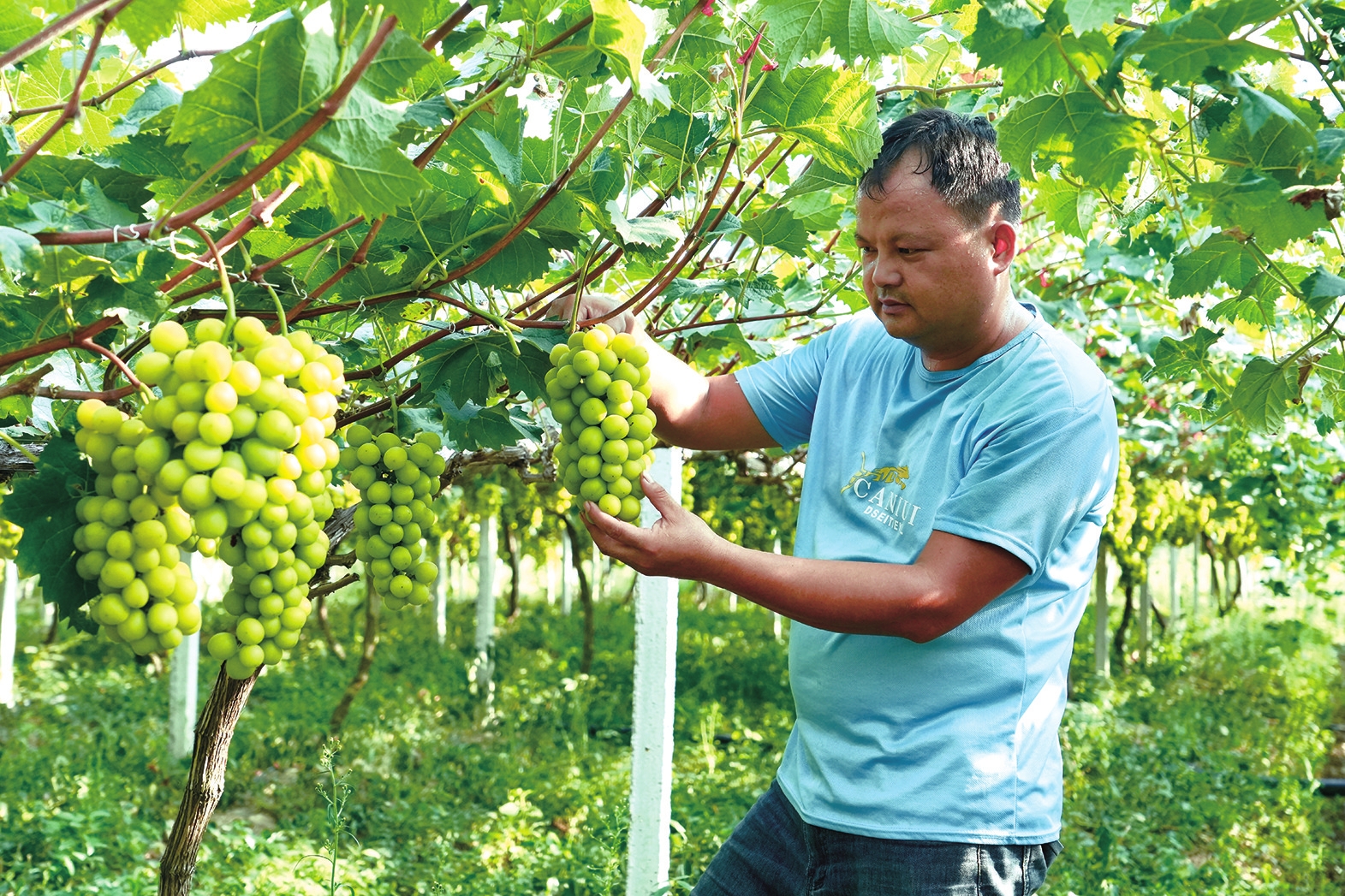 熊介儒正在农场内采摘阳光玫瑰。刘馨予摄