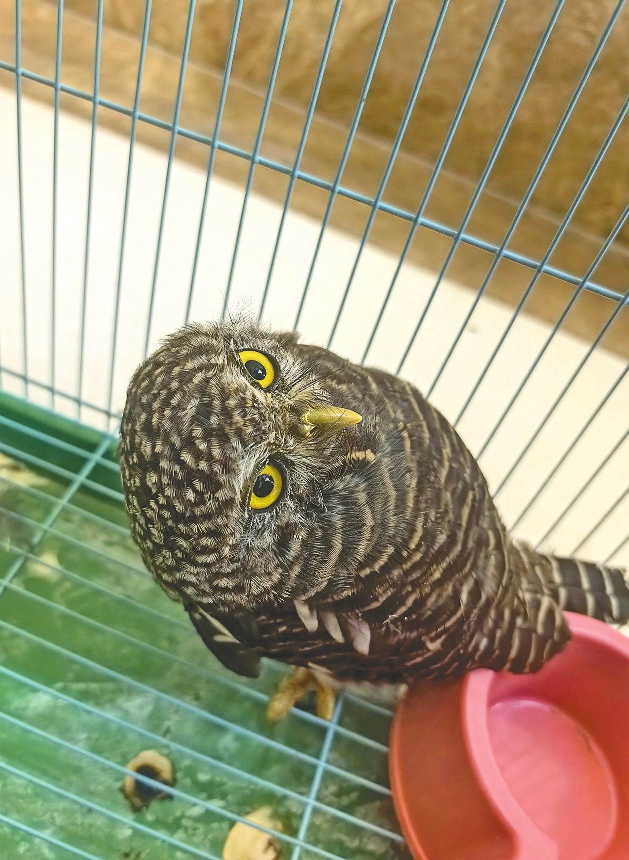 ▲此次救助的国家二级保护动物斑头鸺鹠。甘果摄