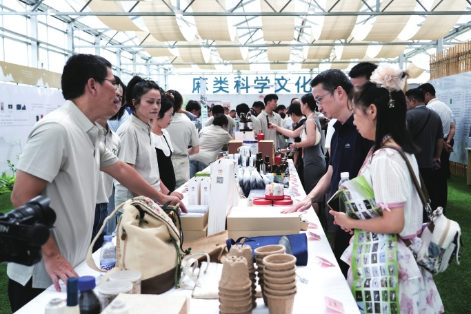 嘉宾在桃李天下研学园参观沅江麻纺制品。黄云摄