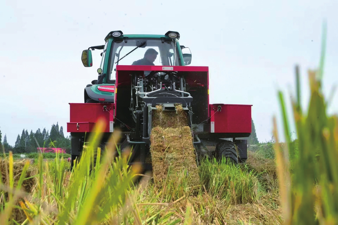 农民驾驶打捆机进行打捆离田作业。刘馨予摄