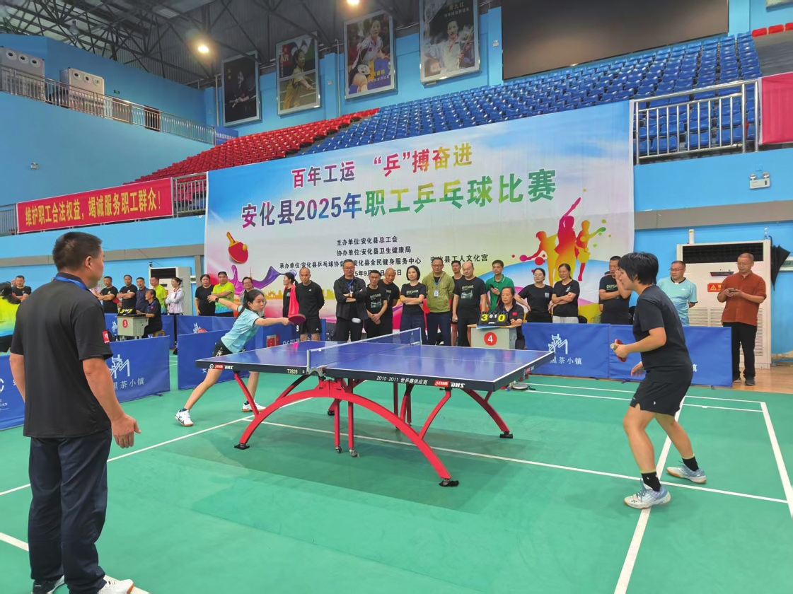 9月24日,由安化县总工会主办,县卫生健康局协办,县乒乓球协会、县全民健身服务中心、县工人文化宫承办的“百年工运‘乒’搏奋进”安化县2025年职工乒乓球比赛在县体育馆拉开序幕。