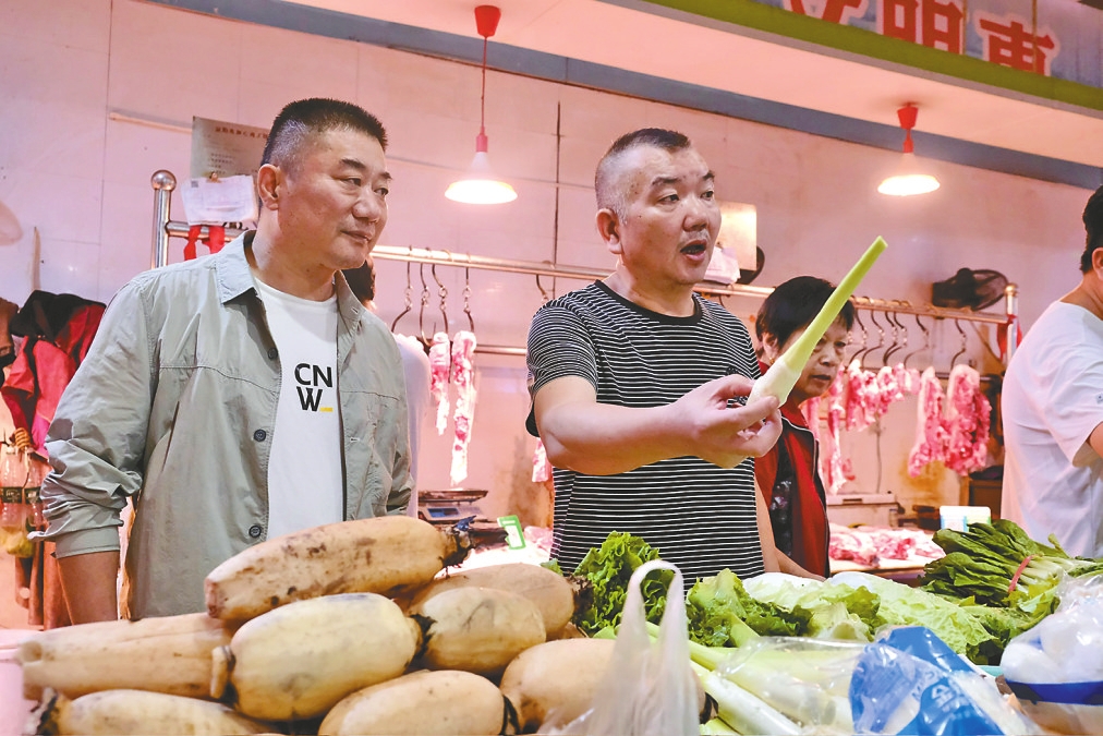 桃花仑农贸市场负责人昌建军询问蔬菜价格。陈徐文倩摄