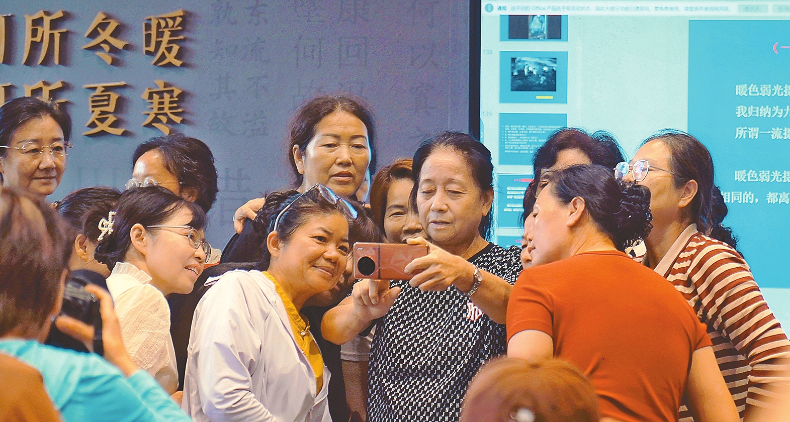 图为李晓英与摄影爱好者交流拍摄技巧。鲍石奇 刘华 摄