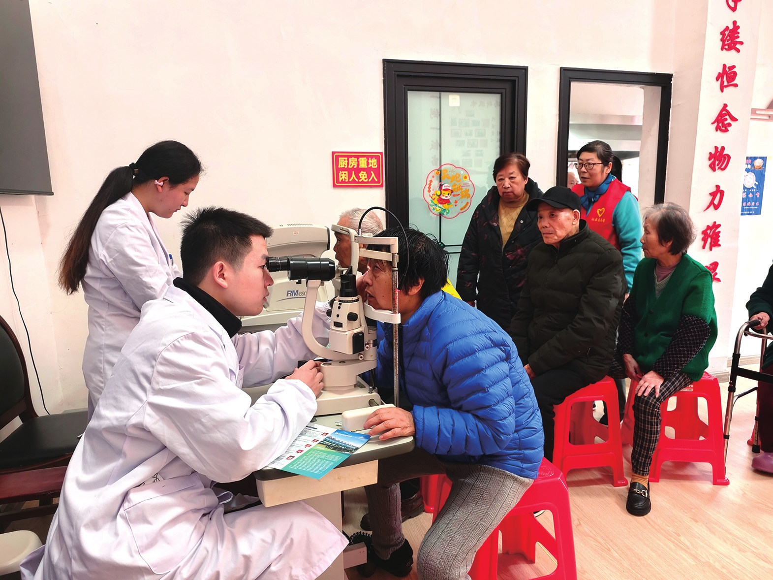 近日,资阳区汽车路街道人民路社区联合益阳市眼科医院医务人员为社区老人义诊,进行视力检测、眼底检查、白内障筛查等项目,并为老人提出具体的个性化护理建议。