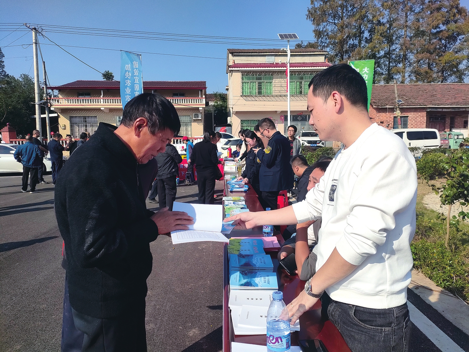 在集中服务区,各参与单位设立了专业咨询服务台。农林专家现场解答种植养殖技术难题,医务人员开展健康义诊和疾病预防宣传,司法工作者提供法律咨询服务,科技人员普及农业新技术等。与此同时,黄茅洲镇还专门设置了农特产品展销区,集中展示展销当地的优质稻米、生态水产、特色水果等农特产品与美食,吸引众多群众驻足选购,有效助推了本地特色农产品的宣传与销售。