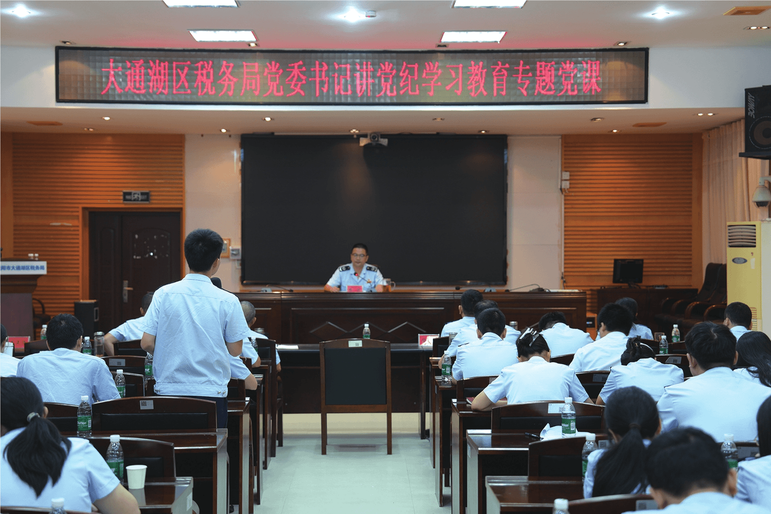 大通湖区首任税务局局长潘定祥尤为记得讲述“税月往事”的时间。那一天,陈波带领班子成员登门拜访,请他为所有干部职工拉拉家常。会议室安静严肃,人人都认真听和记,老局长为大家重温农垦历史画面,感受创业艰辛,血和汗的记忆触发了这一代税务人的诸多感慨。接下来,“寻迹红色税收起源,凝聚税收发展力量”党建活动、“起伏的生命线,多元的人生故事”心理沙龙,一个接一个好的声音和主张传播开来,引导青年干部向善向上。“榜样”系列微视频,将“学习身边榜样”活动落实在日常、抓在日常。由于外地来的干部较多,在下班后的时间里,“青年大讲堂”“青年夜校”应运而生,青年干部轮流上台分享成长经历,用语言表达,用头脑思考,内生动力得到激发。