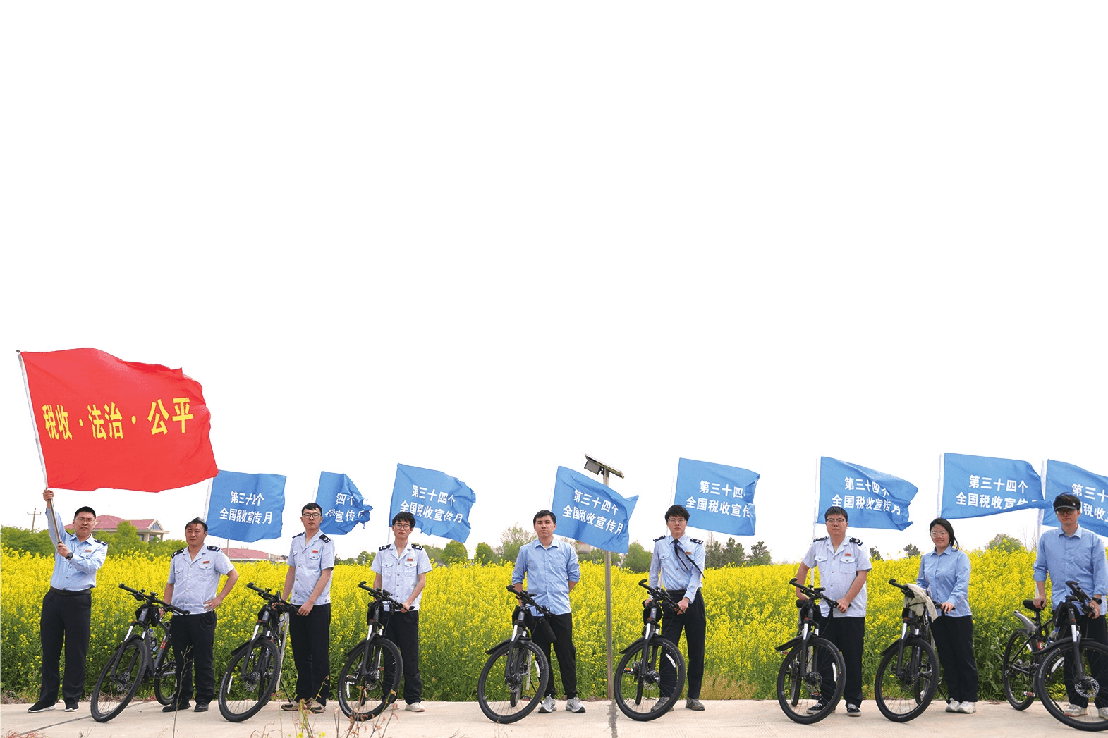 ④税务干部骑行开展税收宣传月活动。
